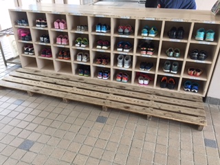 くつ箱のくつの置き方をみんなで確認してから自分のくつはちゃんとできているかな?