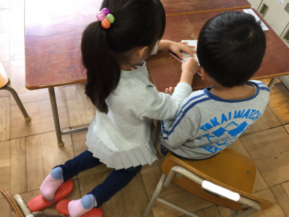 3人グループで折り紙でチューリップを作りました。