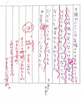 一人ひとり、1週間の出来事を振り返り、ニコニコになった話を書いてくれました。