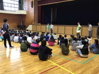 今年度最初の避難練習がありました。今回は『火災』を想定し、全学年が体育館へ避難し、自分の命を守るための大切な話を聞きました。最後には、本校の“ちびっこ防災プロジェクト”のメンバーの6年生が代表で感想を立派に言っていました。