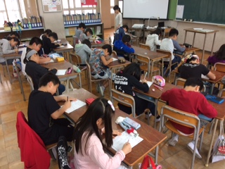 教室の中は静まり、えんぴつで字を書く音が静かに聞こえました。みんな真剣な表情で、集中して漢字を書いていました。