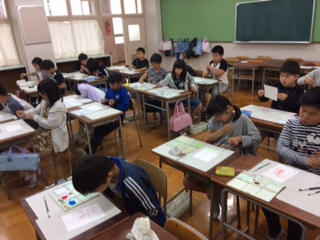1時間目から、漢字テストに向け、「はね」「はらい」などの書き方を確認をして、子どもたちはテストに臨みました。