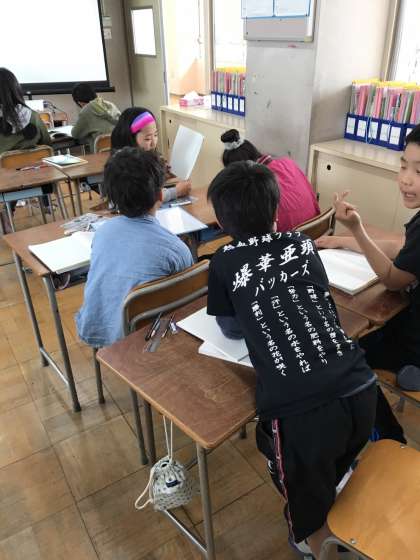 国語(日本語)の学習で、教科書に載っている「サボテンの花」という物語のお気に入りの場面を紹介し合いました。同じ場面を選んだ子同士でグループを組み、理由を交流し合ってみんなの意見や考えを発表しました。どのグループも素敵なことを多く書いていて、よく物語の内容を理解しているように感じました。