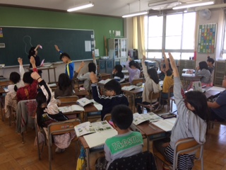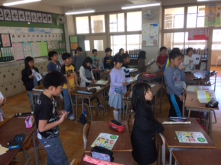 朝、4−1の教室では、音楽集会で歌う「スマイル」の歌声が響いていました。