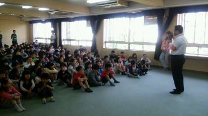 朝会では、校長先生からお話がありました。