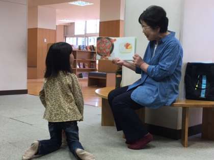 地域のボランティアの方に協力を得て、月に2回夢ひろば(図書室)で『よみきかせ』を行っています。