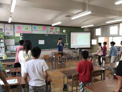 みんなの元気なあいさつから始まるドリームタイム。今年度は月・水・金曜日の5時間目が始まる前の時間を使って、さまざまな英語活動を行っています。英語に楽しみ・親しみ、多くの会話などを通してコミュニケーション力を伸ばしていきましょう!