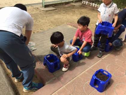 生活科の時間に、あさがおの種を植えました。