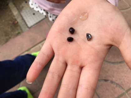 鉢に自分たちで探した石をしきつめて、土を入れてもらい、あさがおの種を3つ・・・