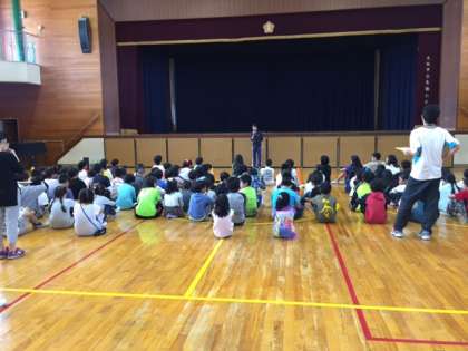 初めての集会、みんな迷子にならず、自分の班に行けました。