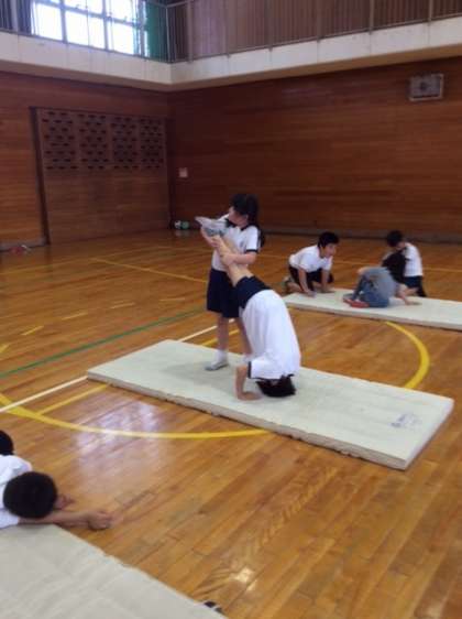 今日の体育では、3人のトリオを組んで、アドバイスを出し合いながら練習をしました。
