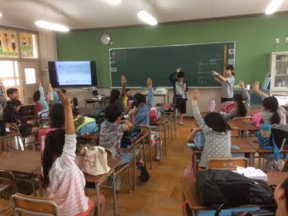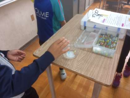 今週から、クラスでビー玉ちょ金を始めました。ビー玉ちょ金では、クラスのみんなが頑張ったことや出来るようになったことを、自分たちで見つけ、帰りの会で発表し、クラスの成長をビー玉に置きかえて、びんの中にためていきます。今日は2日目でしたが、たくさんの手が挙がりました。