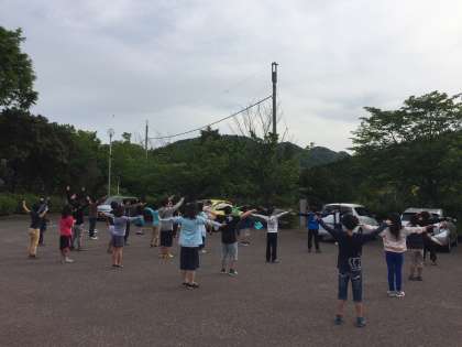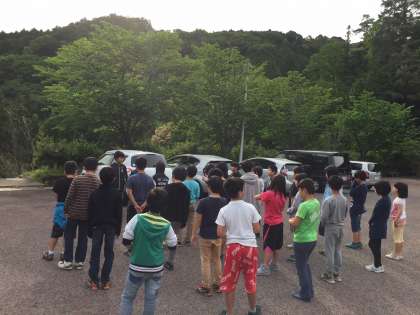 おはようございます。すがすがしい朝を迎えました。一泊移住も後半戦となりました。天気は晴れ、気温14度、朝は少し肌寒く感じますが、鳥たちが心地よく鳴き、山のすみ渡った空気が全体を包み込んでいます。今日も、子どもたちは力を合わせて頑張ります!!