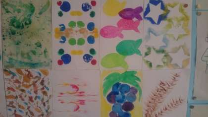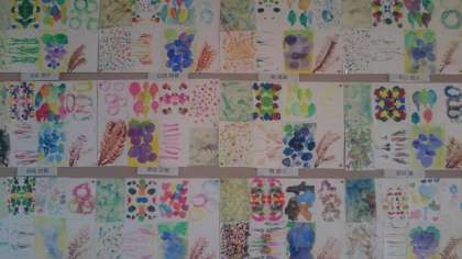 ストローを使った吹き絵や転写などは簡単でしたが、水彩絵の具をつかってマーブリングをしたり、にじみ技法を使ってぶどうを描いたりするのはとても難しかったです。