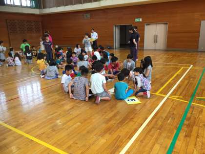 本日の集会は6月12日(月)から始まるたてわり班の活動「ナガリンピックについて」でした。
