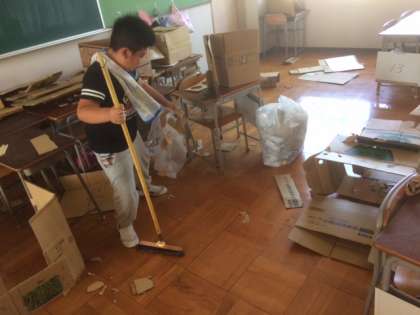 なかよし文化祭に向けて、ダンボールで ゆめのまちづくりをしていますが、ダンボールの切れ端や、ガムテープなどが部屋に散らかっていました。