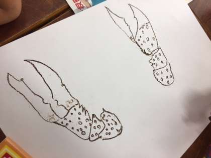昨日、ザリガニが2年生の教室にやってきました。(^_^)/そこで、今日の図工の時間にザリガニの絵を描きました。大きなハサミを動かしているザリガニや容器から出て行こうとするザリガニを見てみんな楽しそうにしていました。どんな絵がかけるのでしょうか。完成が楽しみですね。