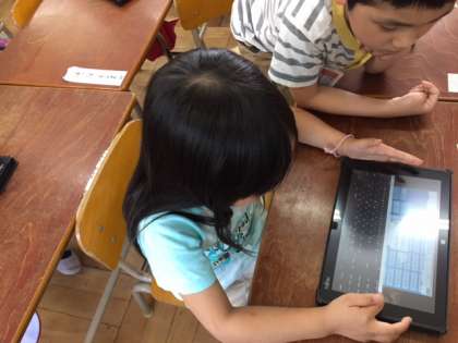 授業で初めて使ったタブレットに子どもたちも大喜びでした。