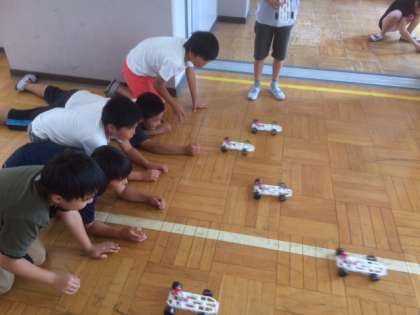 「10分間、自分が作ったモーターカーで遊んでいいですよ。」