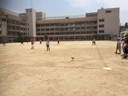 今日の3時間目の体育の時間、クラスで決めた全員の目標が達成できたので、運動場でみんな遊び(キックベース)をしました。赤対白で行いましたが、最後まで本当にいい勝負でした。終わった後は多くの子どもたちが汗だくになって、笑顔があふれていました!