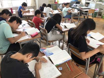 現在、国語(日本語)の学習で「風切るつばさ」という物語文の学習をしています。この学習では、各場面ごとで内容にあったタイトルをつけることをめあてにしています。内容の読み取りを終えた後、一人ひとりが独自のタイトルを考えます。物語文はみんなにとってなじみのある、テレビのドラマやアニメと同じようなものだととらえて、なかなかオリジナルで面白いタイトルが多かったです。クラスの友達がどんなタイトルを考えたのか、教室をまわっての交流も行っています。