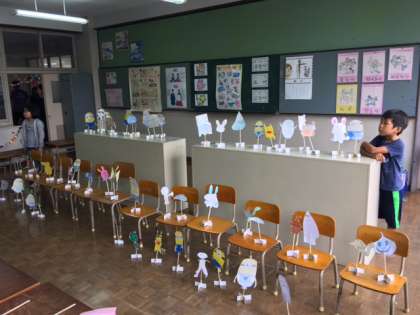 今日はみんなが楽しみにしていた文化祭の日でした。イベント大好きの2年生は「ちょうラッキーシューティングゲーム」で、ゴム鉄砲で的を狙って倒すゲームです。子どもたちは準備を頑張っていたので、たくさんのお客さん来てくれてとても喜んでいました。保護者の皆様のありがとうございました。