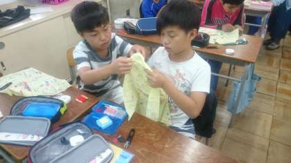並み縫いは、子どもたちに言わせると「楽勝!」だそうで、今までの中で一番カンタンだったようです。