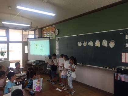 1時間目は国語科「おおききな かぶ」の音読発表会の準備をしました。それぞれのチームが工夫して音読の練習をしていました。