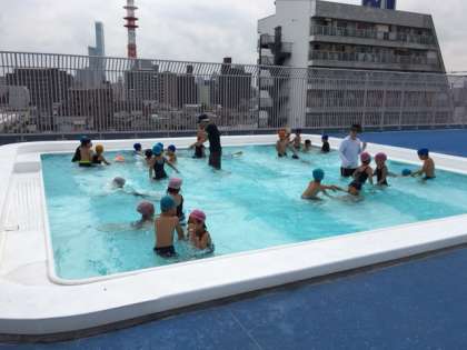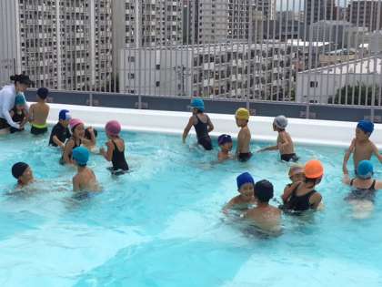今日は小プールでの活動最後の日。少しずつ慣れてきたプールで、子どもたちは楽しく活動しました!