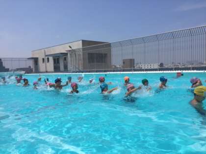 今日もとっても暑かった・・教室では朝からずっと「早くプール入りたい!!」と言っていた子どもたち。