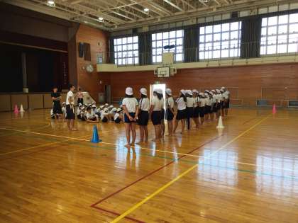今日から10月1日(日)に行われる“運動会”に向けて、5年生との合同練習が始まりました。昨日、6年生だけで練習をしていたので、今日は見本となって入場のときに行うちょっとしたセレモニーの練習をしました。