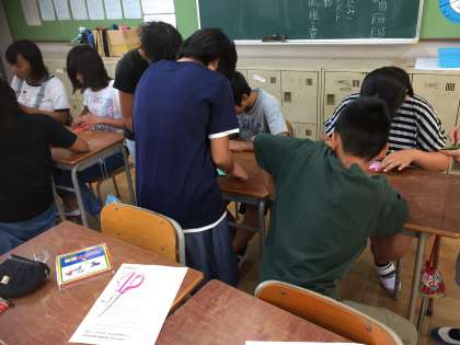 10月18日(水)19日(木)の修学旅行へ向けて、『千羽鶴作り』を開始しました。学習は子どもたちが、被爆者の「佐々木貞子さん」について知ることから始まりました。貞子さんの事を考えながら全学年に千羽鶴を協力してもらう準備をすすめました。子ども達はとても意欲的に取り組んでいました。