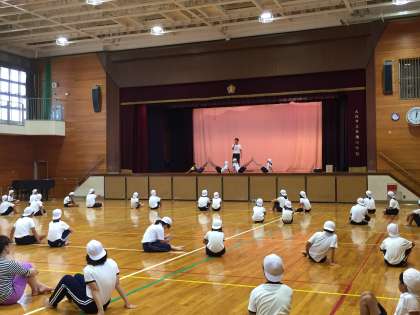 本日は組体操の二人組の練習をしました。力のいる技や、ペア同士息を合わせないとできない技に一生懸命取り組みました。練習では6年生が舞台で見本をしました。指先、つま先までピンと伸ばした姿は素晴らしい見本でした。子どもたちは運動会に向けて毎日全力で頑張っています!応援よろしくお願いします!