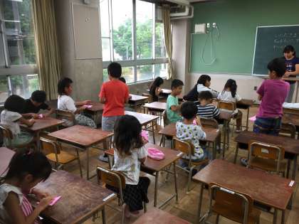 本日、6年生は2時間目に千羽鶴のおり方を1年生に教えに行きました。6年生は様々な場面で1年生に関わる機会があったので1年生もとても楽しみにしていてくれました。1年生、6年生どちらも一生懸命に頑張りたくさんの鶴が完成しました。教室に戻るとき、みんなとても良い笑顔で手を振ってく見送ってくれました。