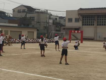 応援団の子どもたちは、運動会当日に向けて、毎日お昼休みに練習しています。今朝の応援練習でも、みんなの先頭に立って声を響かせていました。本番での活躍を期待しています。