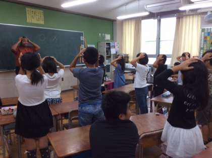 今日は子どもたちがとても楽しみにしているC-Net(外国語活動)がありました。今日は体の部分の名前を英語で言えるように、歌とダンスで唱えたり、ゲームで聞き取ったりしました。