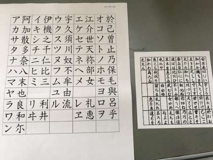 国語(日本語)の学習で、昨日までは中国から伝わった漢字のみで構成される“漢文”を読んで、昔のいろいろな言葉や文字に親しんできました。そして今日、その学習のまとめとして、子どもたちが日頃当たり前のように使っている「ひらがな」「カタカナ」が、どのようにしてできたのかを詳しく学びました。かな文字の元になった『万葉がな』という漢字の一覧表を見て、自分の名前を書いてみたり、簡単な文章を作ってみたりと、とても意欲的に学習に取り組んでいました!