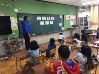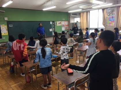 今日の5時間目に英語の勉強をしました。みんな楽しそうに「サイモンセッズ」というゲームをしました。