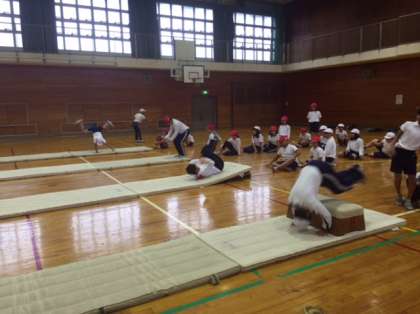 マット運動では、跳びこみ前転や開脚前転などさまざまな技にチャレンジ中ですヽ(^。^)ノ着地がうまくいかなかったり、足が伸びていなかったり、課題を見つけて美しい技ができるように頑張っています!
