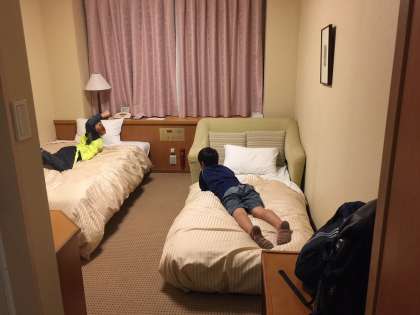 今年の6年生が泊まるこのホテルも、ほとんどが2人1室。お風呂も各部屋のユニットバス。使い方からレクチャーします。