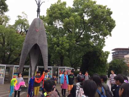 本日最初の行事として、平和の子の像前で「平和集会」を行いました。