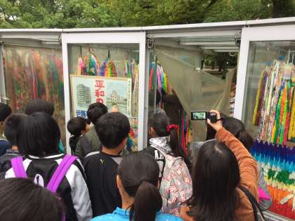長橋小学校の全児童・教職員が平和への思いを込めて折った折り鶴をささげました。