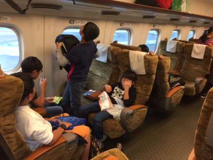 車両が思わぬ九州新幹線だったので、3人グループは急遽2人ずつになって座りました。