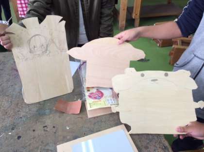 5年生では、図画工作科でホワイトボードの作成に取り組んでいます。今日は初めて電動糸のこを使って順番に板を切りました!