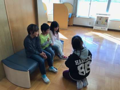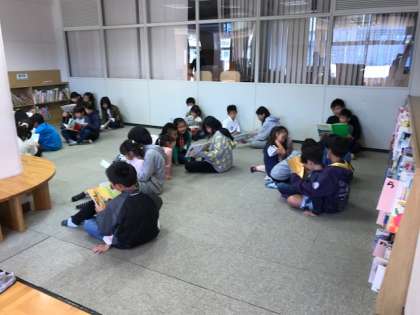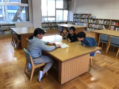 昨日アップしたホームページ『読み聞かせの練習?』は、この“わくわくブックウィーク”の取り組みのためでした。内容は、夢ひろばの時間に1年生へ絵本の読み聞かせを行うというものでした。1年生をひざの上に乗せたり、複数人を相手に大きな声で読んだりと、全員が熱心に取り組んでいました。何よりも読んでもらっていた1年生が喜んでくれたことに、とても嬉しそうにしていました。とてもあたたかい雰囲気の時間でした!