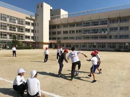 本日は、5、6年生を対象にセレッソ大阪の方が来て下さりサッカーの指導をしてくださいました!最初の1時間は「ボールをワンバウンドさせてから相手のとりやすいところにパス」や「追いかけっこドリブル」等のボールとの触れ合いをメインに練習を行いました!次の1時間はゲームを行いました。子どもたち同士ゲームをしたり、子どもたち対セレッソのコーチ陣でゲームをしたりしました。コーチ陣との試合を子どもたちは本当に楽しみにしており、盛り上がりました!
