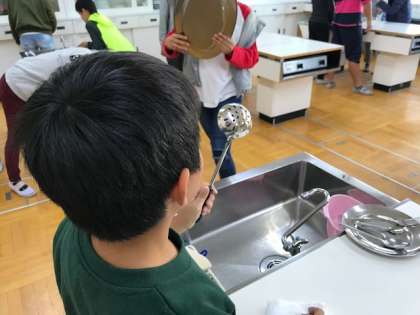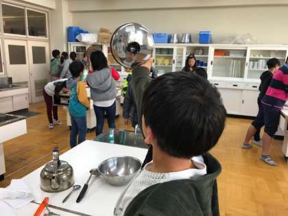 今年度は、3学期(2月中旬頃)に『作品展』があります。その作品展に向けて、2学期から早めに作品の制作を始めています。まず最初に、作品の題材探しということで、図工なのに“家庭科室”にやってきて、おなべのフタやスプーンなどをながめていました。いったいどんな作品が出来上がるのかは、まだまだ先になりますが、当日をお楽しみに!!