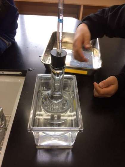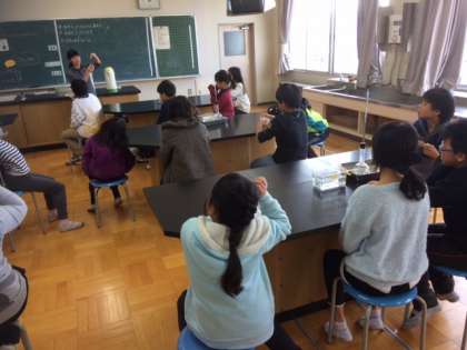 そこで、空気と水のどちらが体積の変化が大きいか比べるために実験をしました。結果は、空気です。今回は温めただけだったので、冷やした場合はどうなるのか、次の授業で確かめたいと思います。