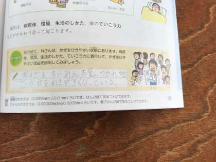 本日6年生では、病気について(特に風邪について)学習をすすめました。まず風邪をひいてしまう原因について子どもたち同士で考えました。「夜寝るのが遅いから」「こたつに入りっぱなしだから」「疲れているから」など子どもたちから意見がありました。その次にどうすれば、風邪を予防できるかを考えました。こちらは「手洗い・うがい!」「早寝早起き!」など子どもたちに身近なところから意見がありました。最近、冬の寒さもどんどん強くなって来ました。それにともない風邪が流行るおそれがあります。できることをしっかり心がけ、風邪をひかないように頑張りましょう!