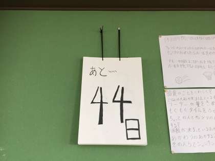 本日より始業式で作成した。『カウントダウンカレンダー』を教室に掲示しました。6年生22人が二枚ずつ残りの日数を書きました。これから学校のある日に1枚ずつめくっていきます。残りの日数を数字で表すことで、卒業まで本当にあと少しなんだなと子どもたちも実感していました。カレンダーを掲示することで改めて1日1日の大切さを知ることができました。
